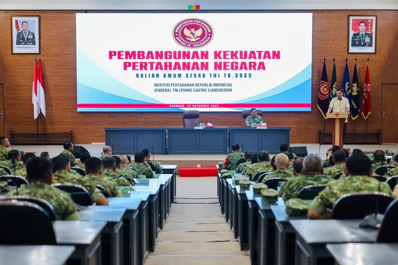 BANDUNG | LENTERAKEADILAN.CLICK – Menteri Pertahanan (Menhan) RI, Sjafrie Sjamsoeddin, memberikan pembekalan strategis dan motivasi mendalam kepada Perwira Siswa Dikreg LIV Sekolah Staf dan Komando (Sesko) TNI Tahun Anggaran 2025. Acara penting ini berlangsung di Kelas Ghra Widya Adibrata, Sesko TNI Bandung, pada hari Selasa (25/11/2025), menegaskan komitmen pemerintah dalam menyiapkan pemimpin militer masa depan yang visioner.
